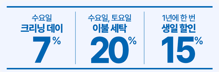 | 장점 | 가성비 (1~2채) | 편리한 비대면 | 프리미엄 케어 | 대용량 세탁 |
