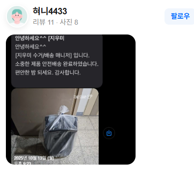픽업 전, 픽업 후, 배송완료 후 모두 문자로 미리 연락도 주시고 세탁도 깔끔하게 되서 아주 만족합니다!! ☺️