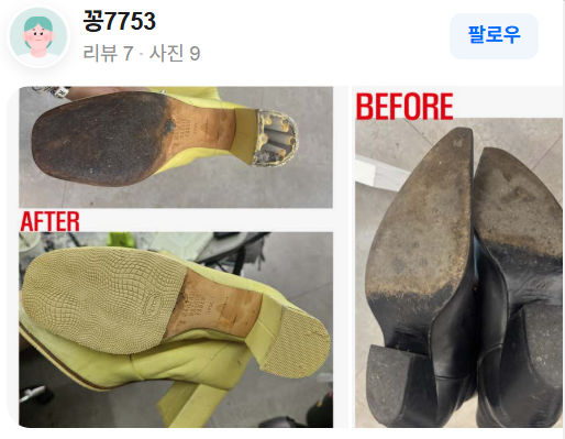 밑창변색 복원 맡겼는데 아주 깨끗하게 새 거처럼 바뀌었어요! 앞으로 신발 세탁은 여기로 당첨입니다👍👍