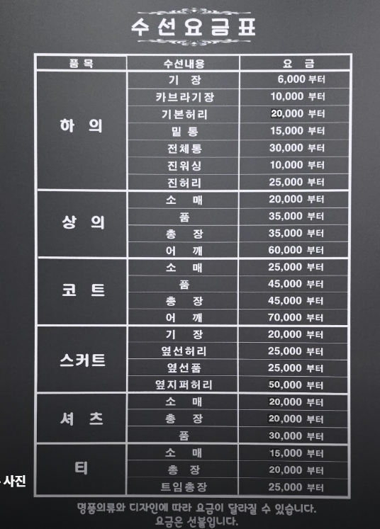 ※ 명품의류와 디자인에 따라 요금이 달라질 수 있습니다. 요금은 선불입니다.(출처:네이버플레이스)