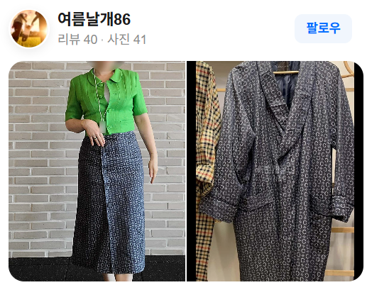 "로브를 잘 안입게 되서 리폼 고민하다가 사장님께 요청드렸는데, ㅠㅠ 또 백화점 퀄리티를 만들어주셨어요! 와... 어떻게 이렇게 체형에 딱 맞는 맞춤옷으로 안감까지 정성스럽게 해주셨는지 너무 맘에 들어요!! [...] 사장님 아이디어로 단추형으로 입기 편하고, 사이즈 조절도 가능하게 만들어주셨어요! 단추는 그냥 블랙 단추 달아주실 줄 알았는데, 손수 싸개단추까지 같은 원단으로 만들어주셔서 고오급 그자체 뿜뿜하네요!!"