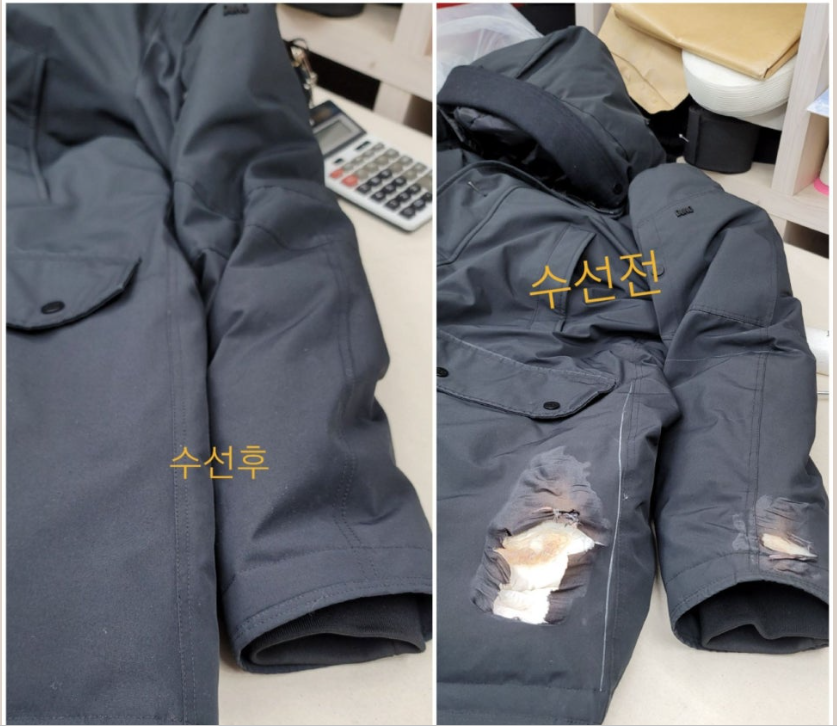 "안녕하세요! 전 뭘 사도 한번도 리뷰 안쓰는데 이번은 너무 감쪽같게 새옷으로 만들어줘서 고마운 마음에 안 쓸 수가 없었습니다 집 근처 수선집 몇집 갔는데 다 못한다고해서 친구한테 소문듣고 마선재맞춤옷수선에 연락했더니 수선할수있다고해서 택배보냈는데 빠른시간에 대박 신기하게 새옷으로 탄생 시켜 줘서 기분이 너무 좋네요"