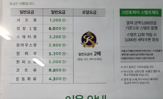 | 패딩세탁 | 35분 | 7000원 |