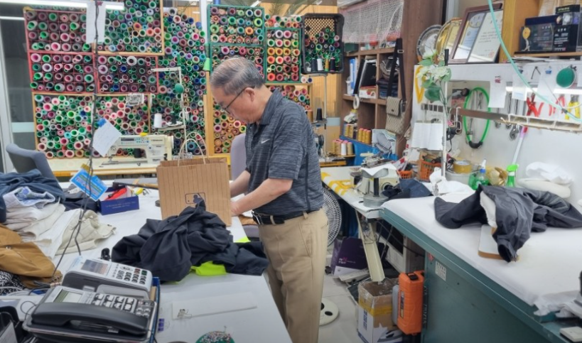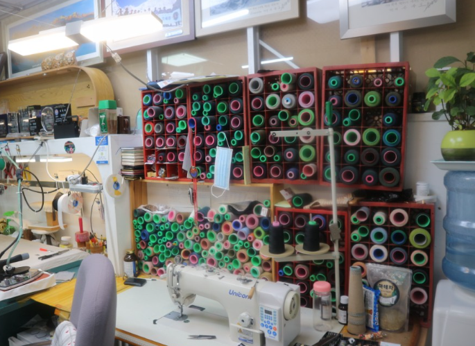 가게에 들어서는 순간부터 수많은 실타래와 전문 장비들이 레전드 명품 수선의 깊이를 느끼게 합니다. 사장님께서는 고객의 옷을 마치 자신의 옷처럼 꼼꼼하게 살피고, 원하는 디자인과 핏에 맞춰 섬세하게 상담해 주십니다.