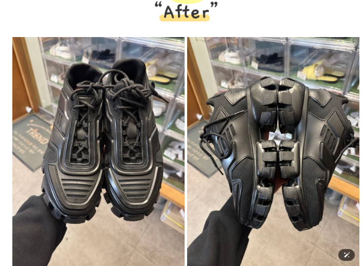 "신발장에서 잠들어 있던 스피드러너 세탁이랑 미우미우 플랫 밑창보강 했어요. 프로페셔널하신데 가격도 합리적이라니.. 매우 만족스럽습니다👍"
