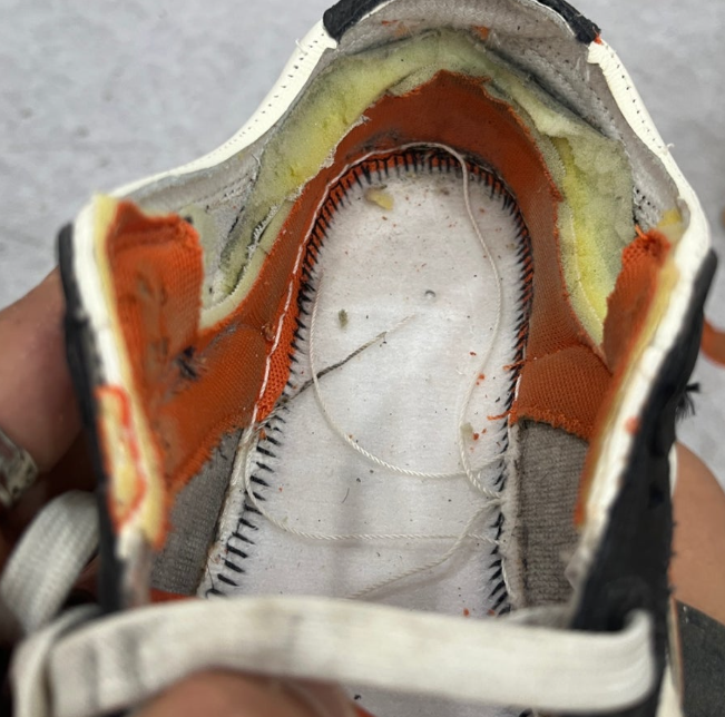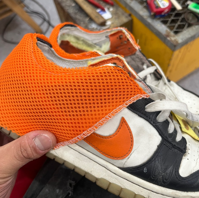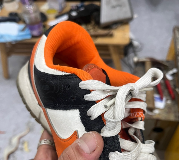 운동화 뒤꿈치가 터졌을 때, 천만 덧대면 신발이 작아지고 불편해집니다. 저희는 기존 스펀지와 원단을 모두 제거하고 새것으로 교체합니다. 이 방식이야말로 신발 사이즈 변화 없이 편안한 착용감을 유지하는 정석적인 수선 방법입니다.