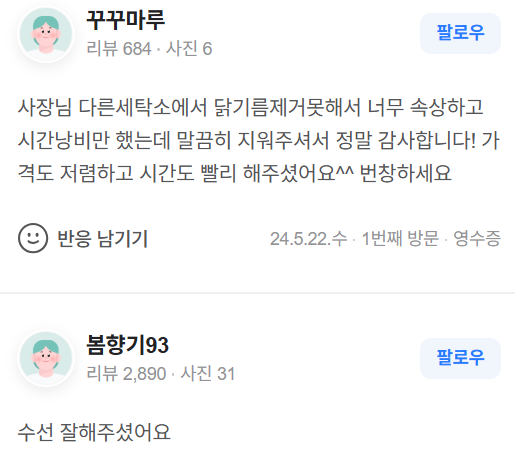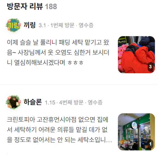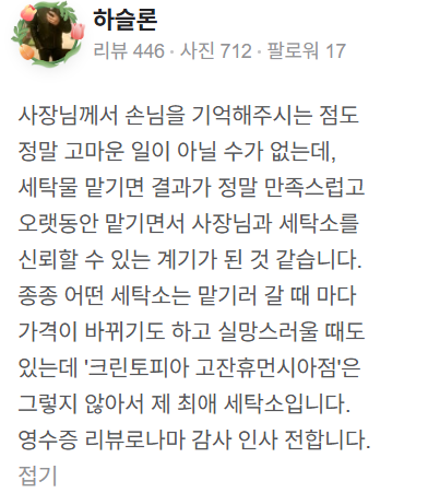 아래 리뷰가 이 세탁소를 말해주네요~ ㅎㅎㅎ
