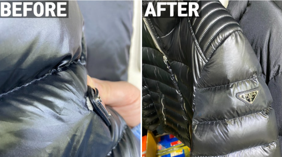 프라다 구스다운 패딩 수선(로고찢어짐)