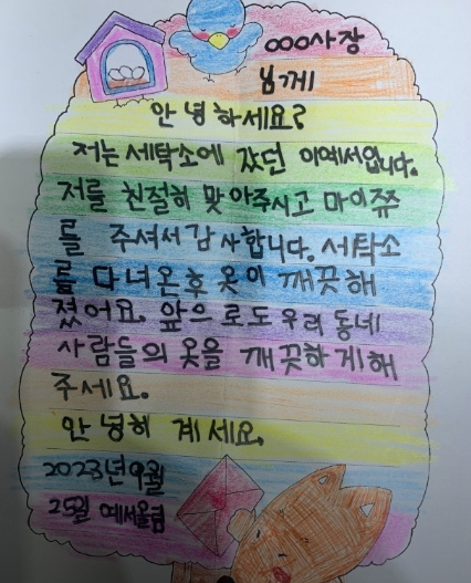 - **무거운 세탁물 서비스:** 무거운 세탁물은 **서비스로 배달**해 주는 등 섬세한 고객 서비스를 제공합니다.