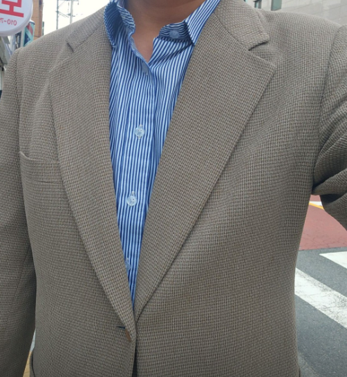 "애착 블레이저의 완벽한 변신, 맞춤복 같은 어깨 핏"