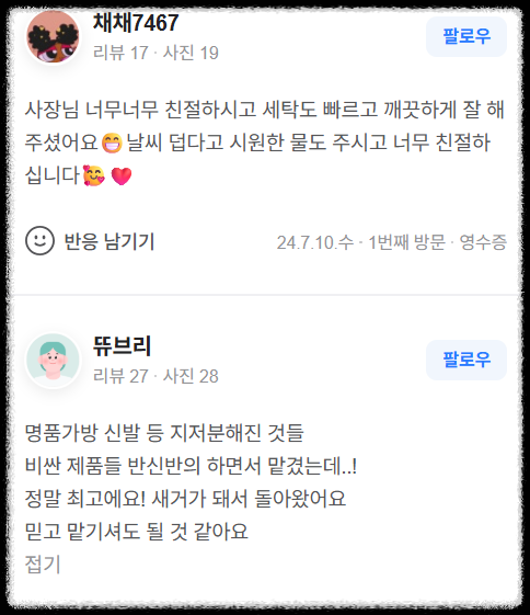 | 일산 명품세탁, 명품수선, 명물인생 세탁소 신발세탁, 일산세탁달인 매장 TOP3 (8) | 2025.05.06 |
