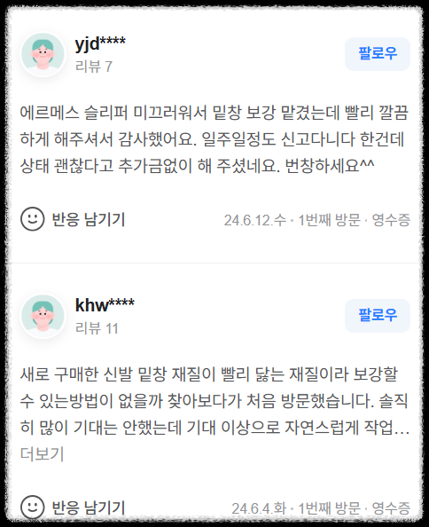깔끔하게 밑창 복구도 완료예요 너무 친절하셔요