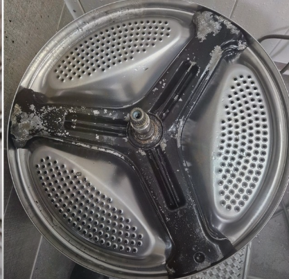 기계를 전문적으로 다루는 입장에서 말씀드리자면, 10년 정도 된 드럼세탁기는 내부 통을 지지하는 '스파이더(삼각대)' 부품 뒷면에 세제 찌꺼기가 돌처럼 굳어 있습니다. 이는 단순 세탁조 클리너로는 절대 제거되지 않으며, 방치할 경우 축이 틀어지거나 베어링 고장으로 이어져 세탁기 전체를 교체해야 하는 상황이 발생합니다.
