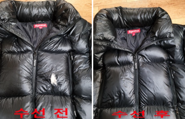 "아끼는 슈프림 패딩 지퍼 옆이 쫙 찢어져서 정말 하늘이 무너지는 것 같았어요. 그런데 수선 후에 옷을 받고 소름이 돋았습니다. 사장님이 찢어진 부분이랑 거의 똑같은 원단을 어디서 구해오셔서 덧대주셨는데, 아무리 봐도 어디가 찢어졌던 건지 티가 하나도 안 나요! 이건 수선이 아니라 마술이에요. 로또 5등 당첨된 기분이었습니다." (출처:명품옷수선황금손)